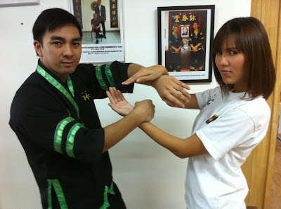 I wasn't kidding about him being a Wing Chun instructor. Here's a picture of him with Julie Hoi (or is it Julie Woon now?).